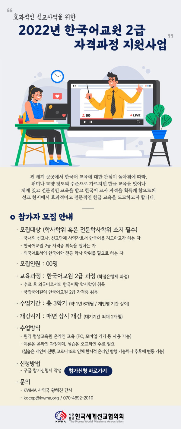 [KWMA 한국어교원 2급 온라인 과정 안내]