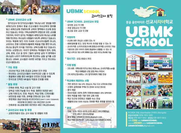 < 몽골 UBMK 학교 교사선교사 모집 안내 >