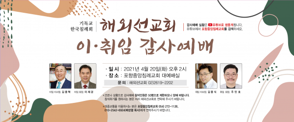 해외선교회 회장 이, 취임 감사 예배 드립니다.