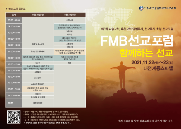 10월 11~12일에 예정되어 있던 파송, 후원 교회 담임목사 초청 제3회 FMB선교포럼이 코로나19 거리두기 서울, 경기 4단계, 그외 지역 3단계가