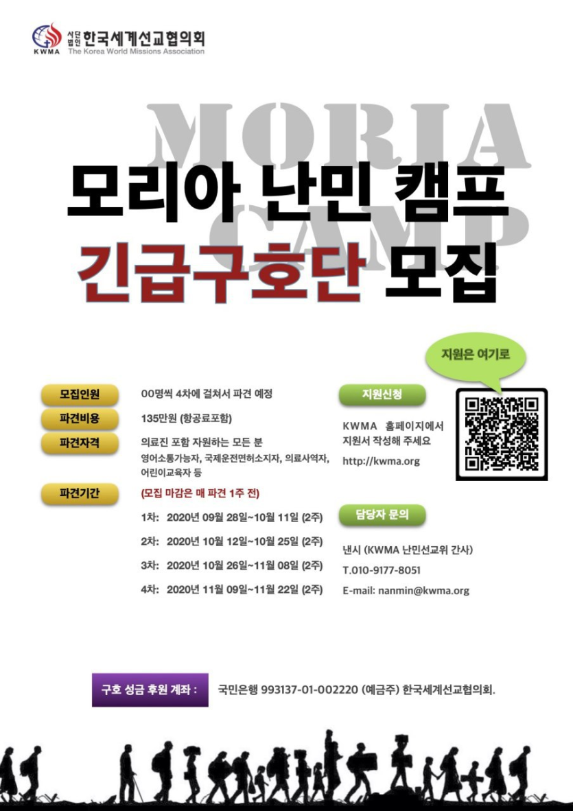 그리스 레스보스섬 모리아 난민캠프 긴급구호단 모집 안내