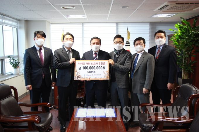 지난 1월 14일 여의도교회(국명호 목사, 왼쪽 두 번째)에서 FMB선교사를 위해 후원금 1억 원을 보내주셨습니다.