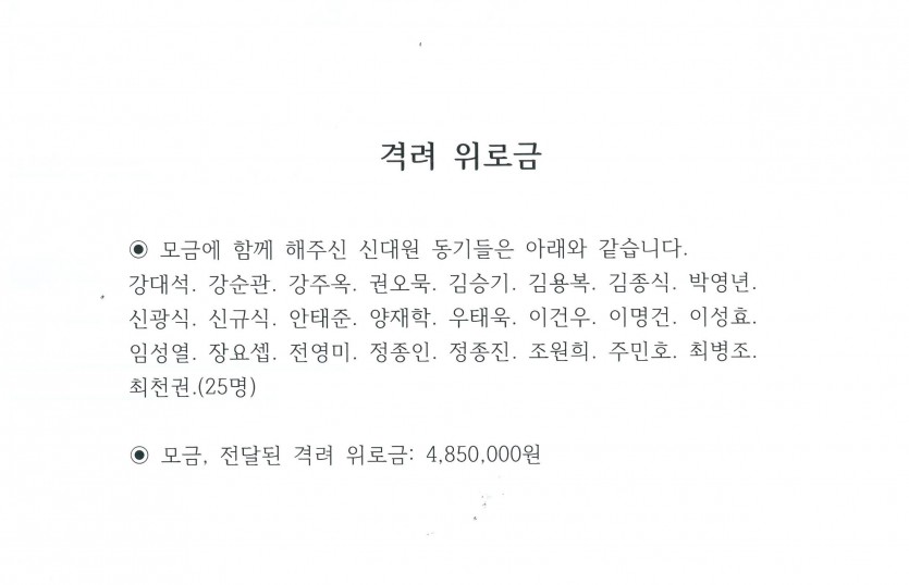 신대원 7기 동문들이 보내온 격려 위로금