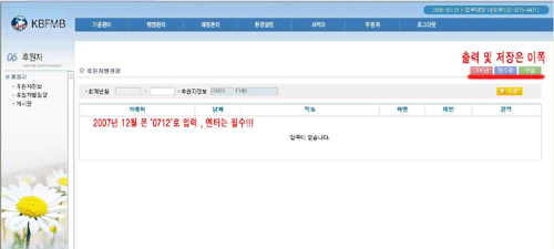 기부금 확인서를 출력하고자 할 때에는 ‘기부금’을 클릭 후 ”인쇄’ 클릭